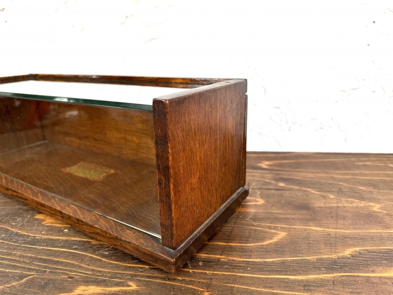 前面、上部には厚みのあるガラス、フレームはオーク材が使われています。