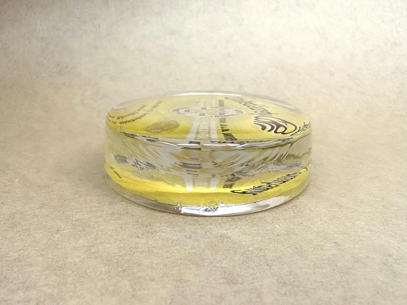黄色地にロゴと文字が目立つ、雰囲気の良いアイテムです。