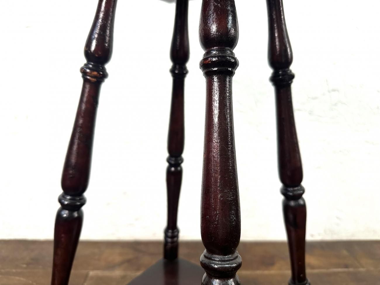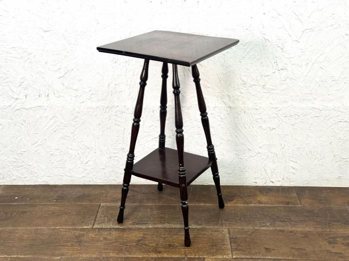 華奢なデザインとろくろ脚が美しい木製のディスプレイテーブルです。