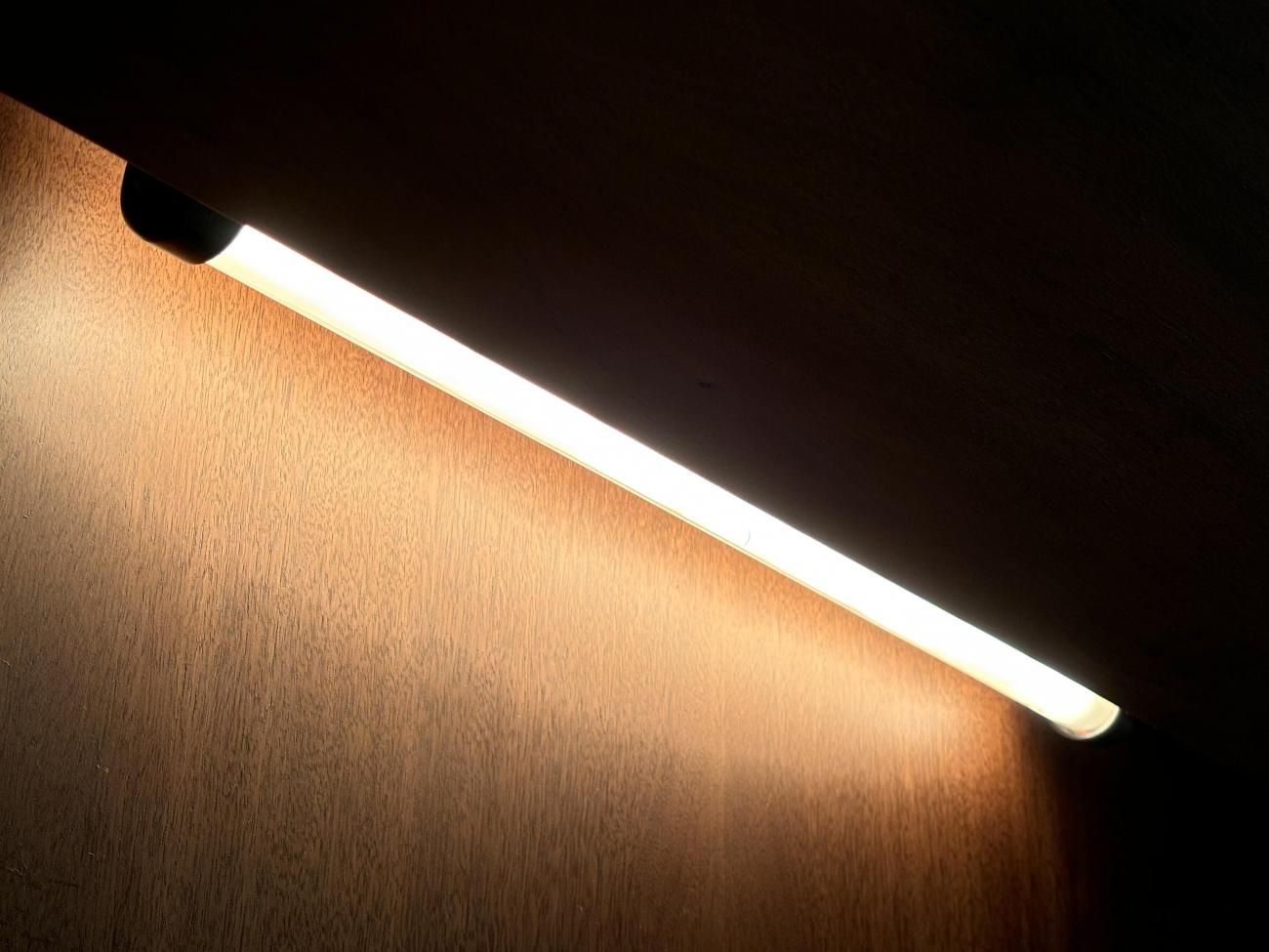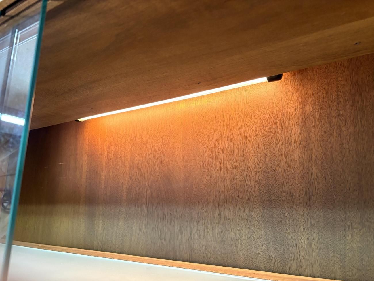 上段は照明がついた3段式の収納になります。