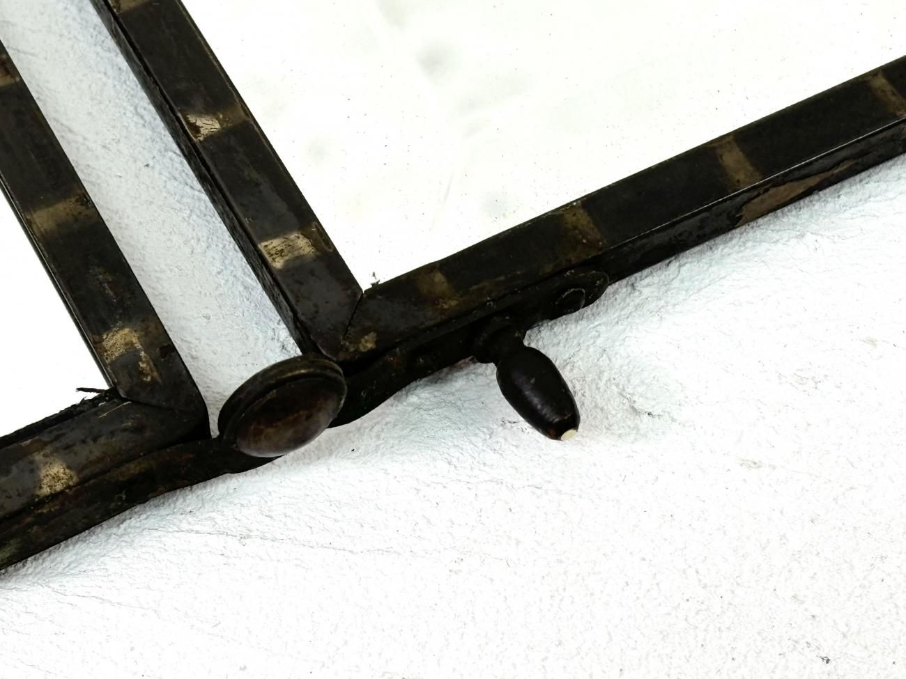 裏面の布地の古びた風合いや、細かな金具のやれ具合がアンティークならではで