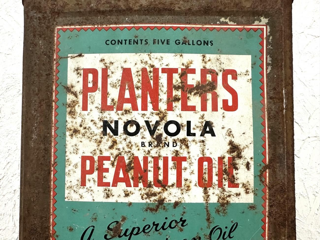 Mr.ピーナッツのマスコットキャラクターで有名な、Plantersの5ガロンのピーナッツオイル缶です。