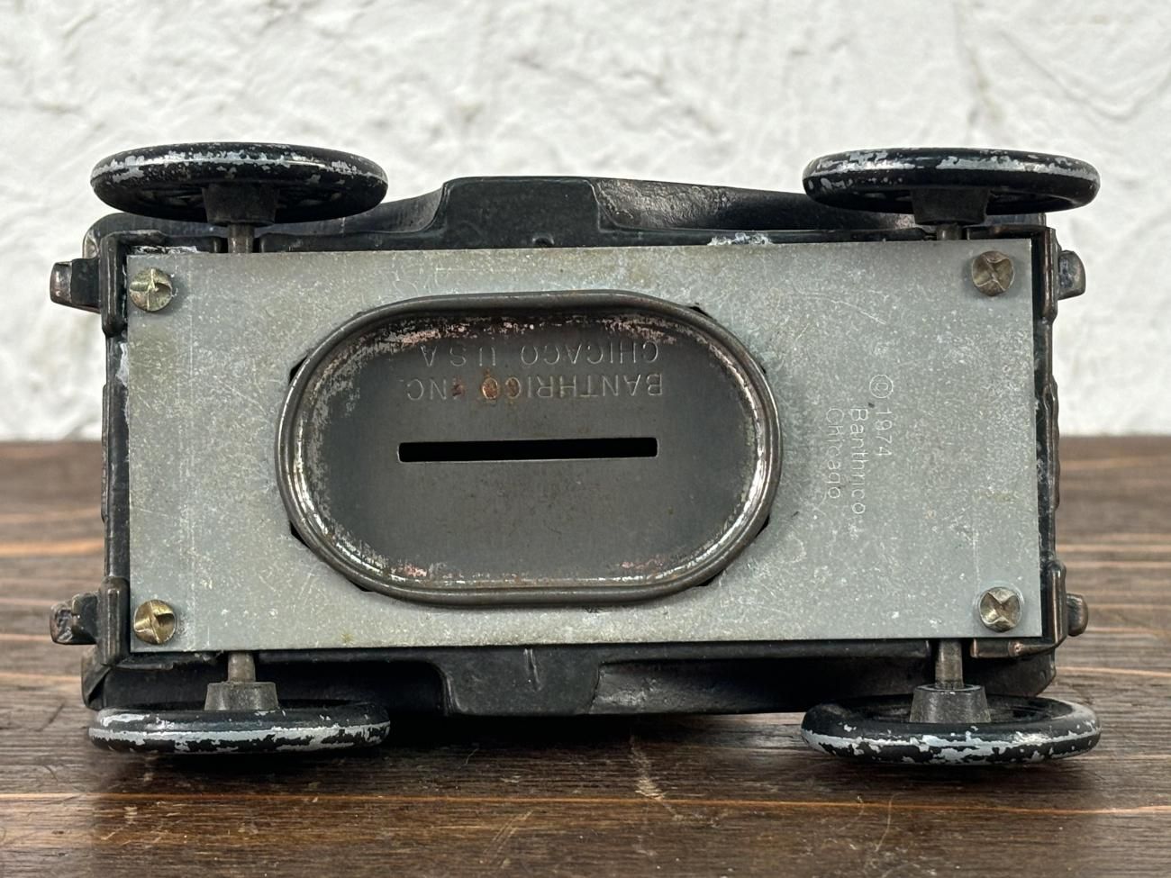 クラシックカーをモチーフにしたメタル製の貯金箱です。